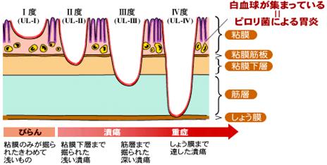 消化管粘膜の剥脱した分節で,典型的には胃内(胃潰瘍)または最初の数センチの十二指腸(十二指腸潰瘍)で,粘膜筋板を貫通するものをいう。