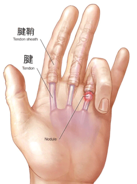 指を曲げる屈筋腱が、腱を束ねている腱鞘を滑らかに通れなくなることで、その摩擦により腱鞘が肥厚します。 その部位での引っ掛かりと開放により、弾発現象が引き起こります。