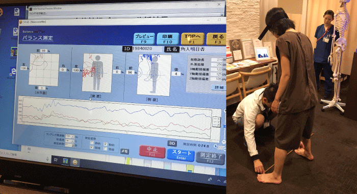 アスリートやスポーツ愛好家の方に向けて、身体の「軸」や「重心バランス」を測定・可視化する、診断機「バランスビュー」を導入しています。