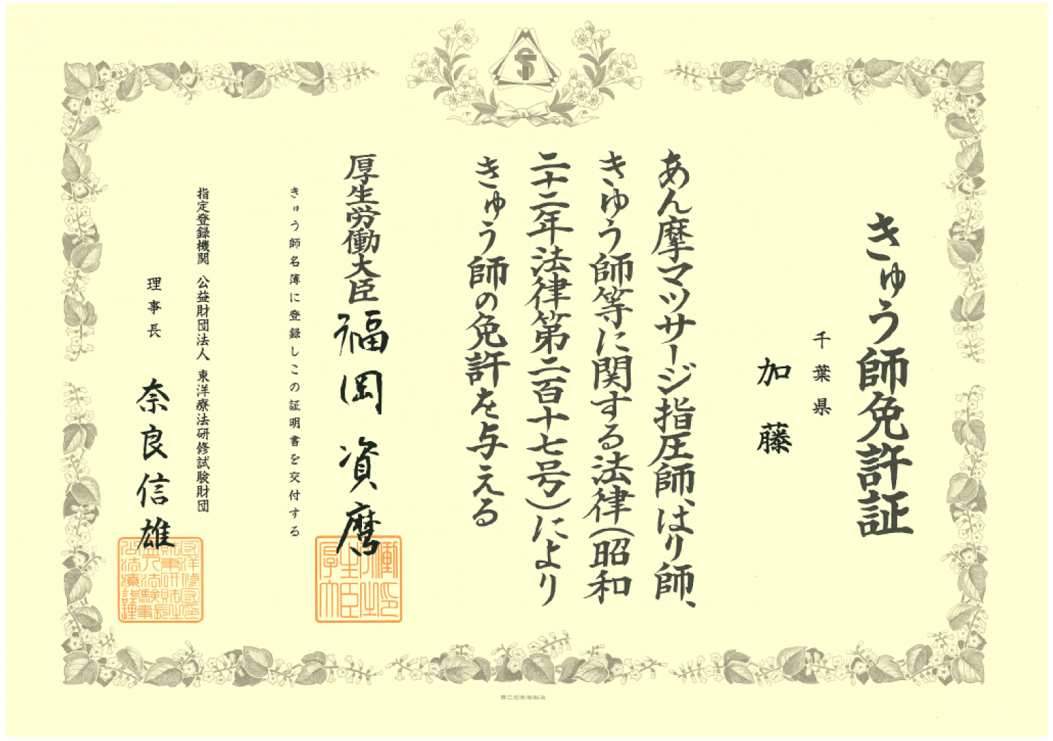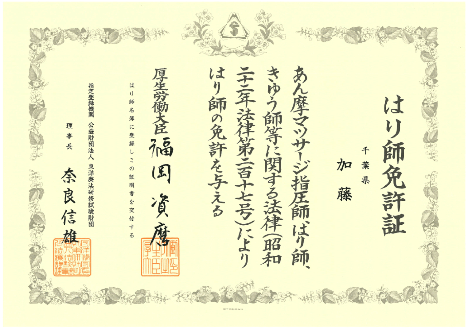 千葉県内にて大手整骨院グループの分院長として3年間勤務後、当社にてお世話になっております